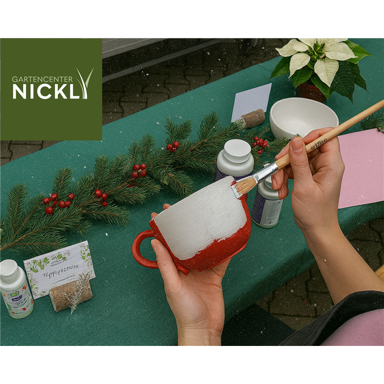 Inklusive: Auswahl aus 5 Rohkeramiken, alle Materialien, Glühwein/Punsch & weihnachtliches Gebäck.